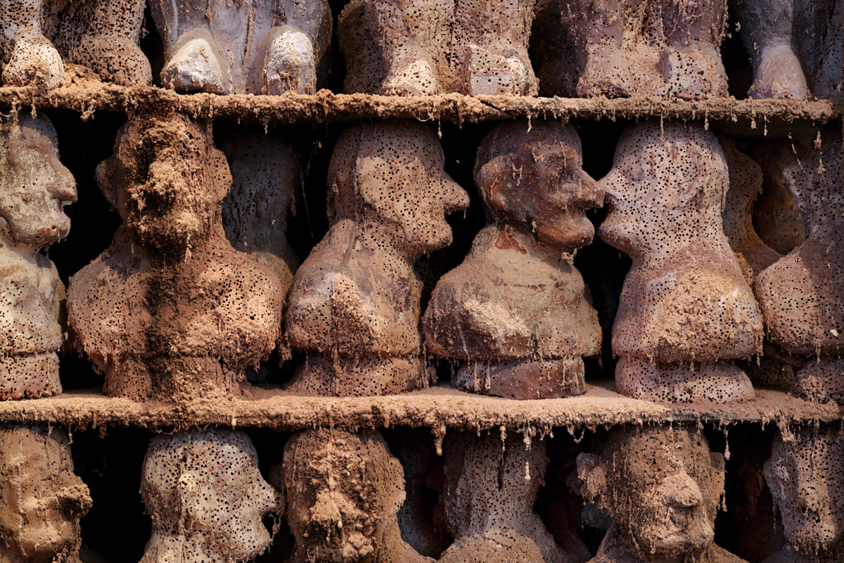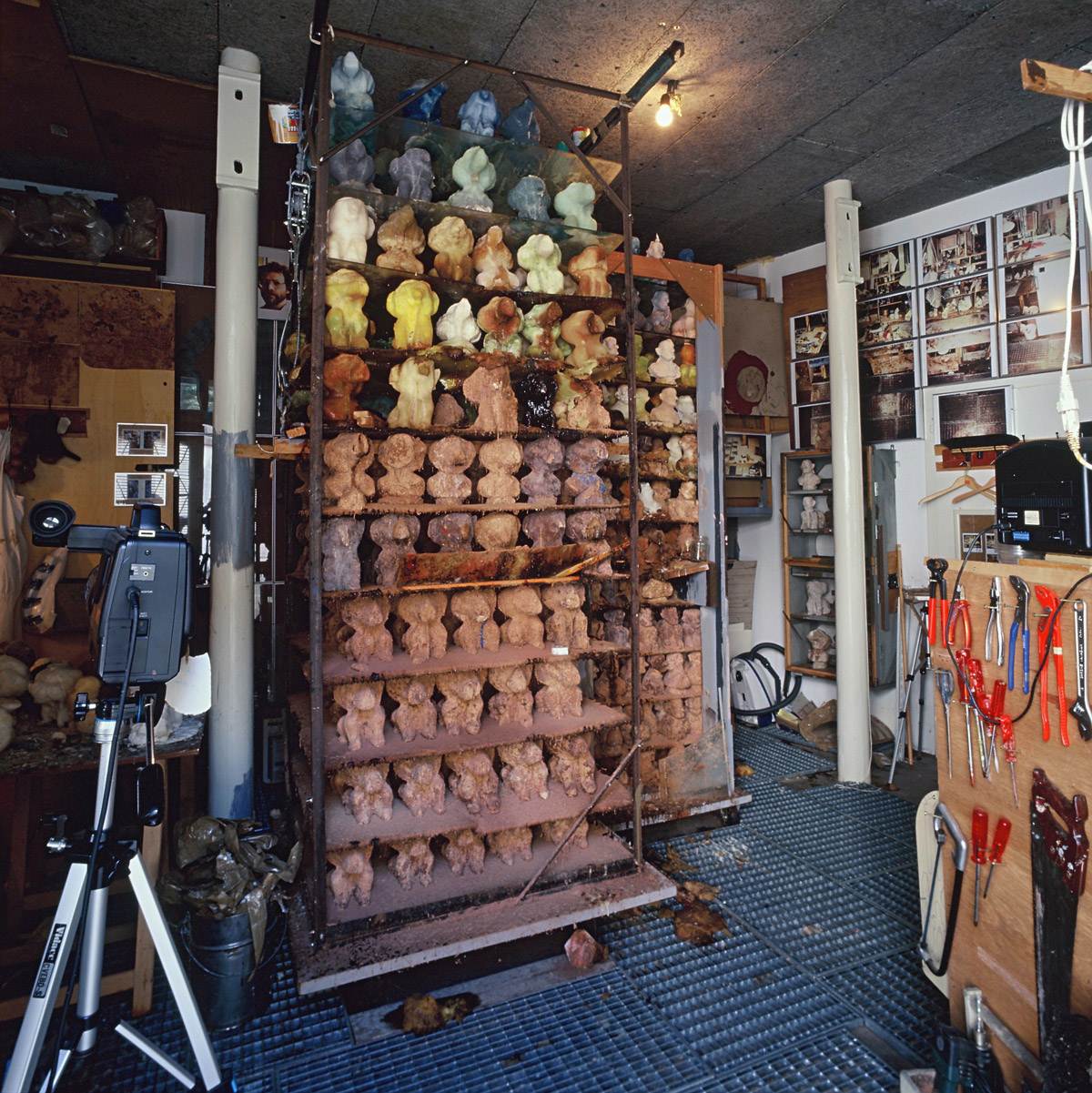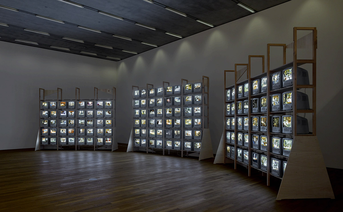 Das Art Handling-Team installiert das Werk Volumes (Detail), 2012 von Paul Chan in einem Lagerraum. Foto: Ursula Sprecher